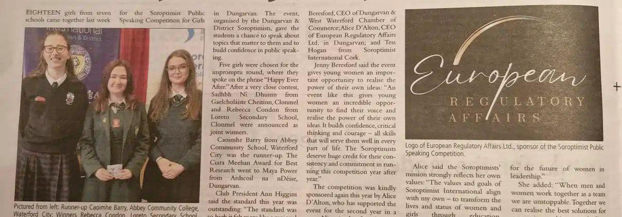 The Soroptimist Ireland Girls’ Public Speaking Competition has been running for over 40 years.